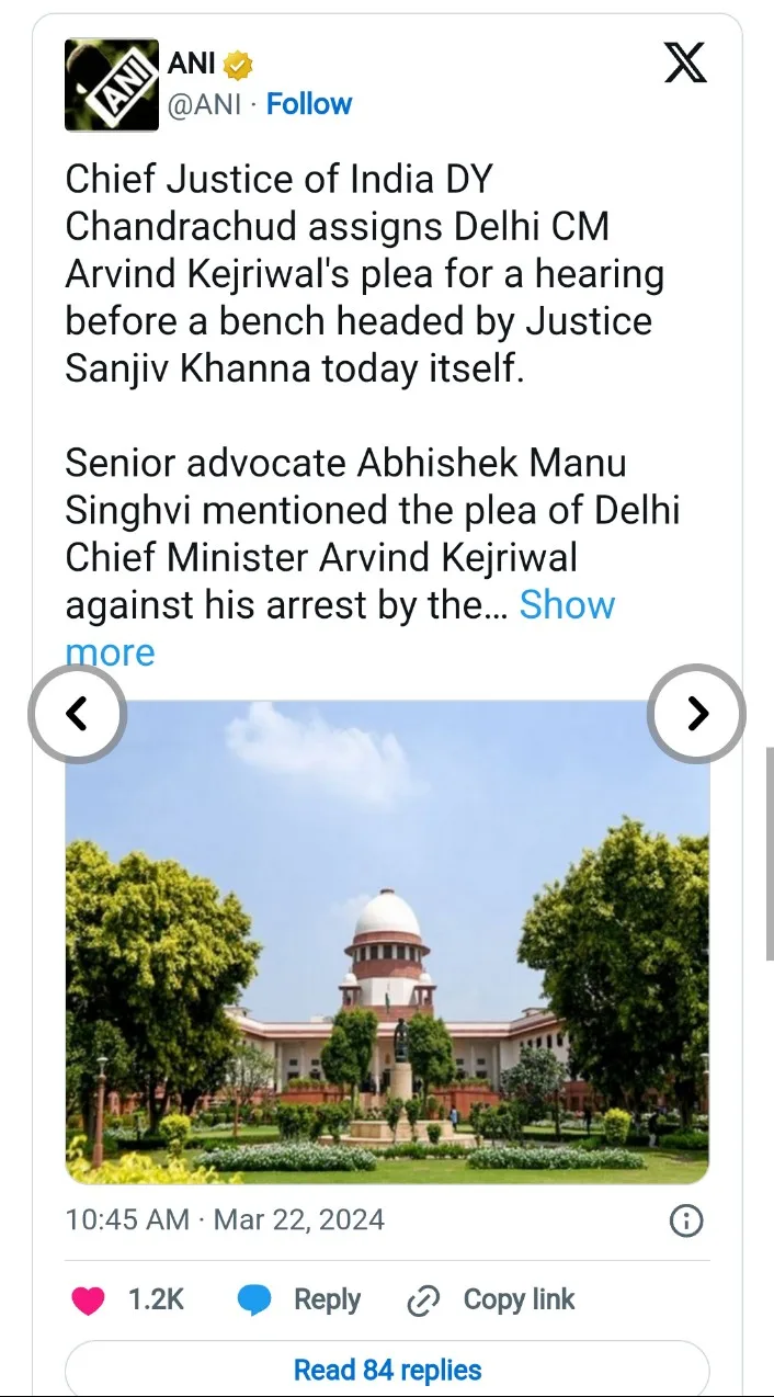 Prior to this, the Supreme Court had agreed to expedite the hearing on Kejriwal’s case. Last night, the Enforcement Directorate (ED) raided Kejriwal’s residence and arrested him after a two-hour interrogation. While Aam Aadmi Party workers protested outside his residence, ED officials conducted searches inside. Additionally, significant evidence was reportedly found during the search, increasing concerns about Kejriwal’s involvement in the case.