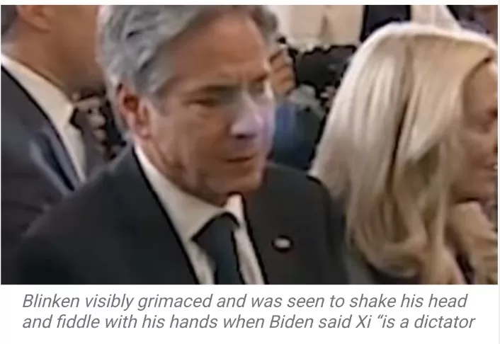 Antony Blinken, aged 61, could be seen grimacing and fidgeting with his hands in response to President Biden’s characterization of Xi Jinping. The President remarked that Xi is a “dictator in the sense that he is the guy who runs the country that is a communist country… based on a form of government different than ours.”