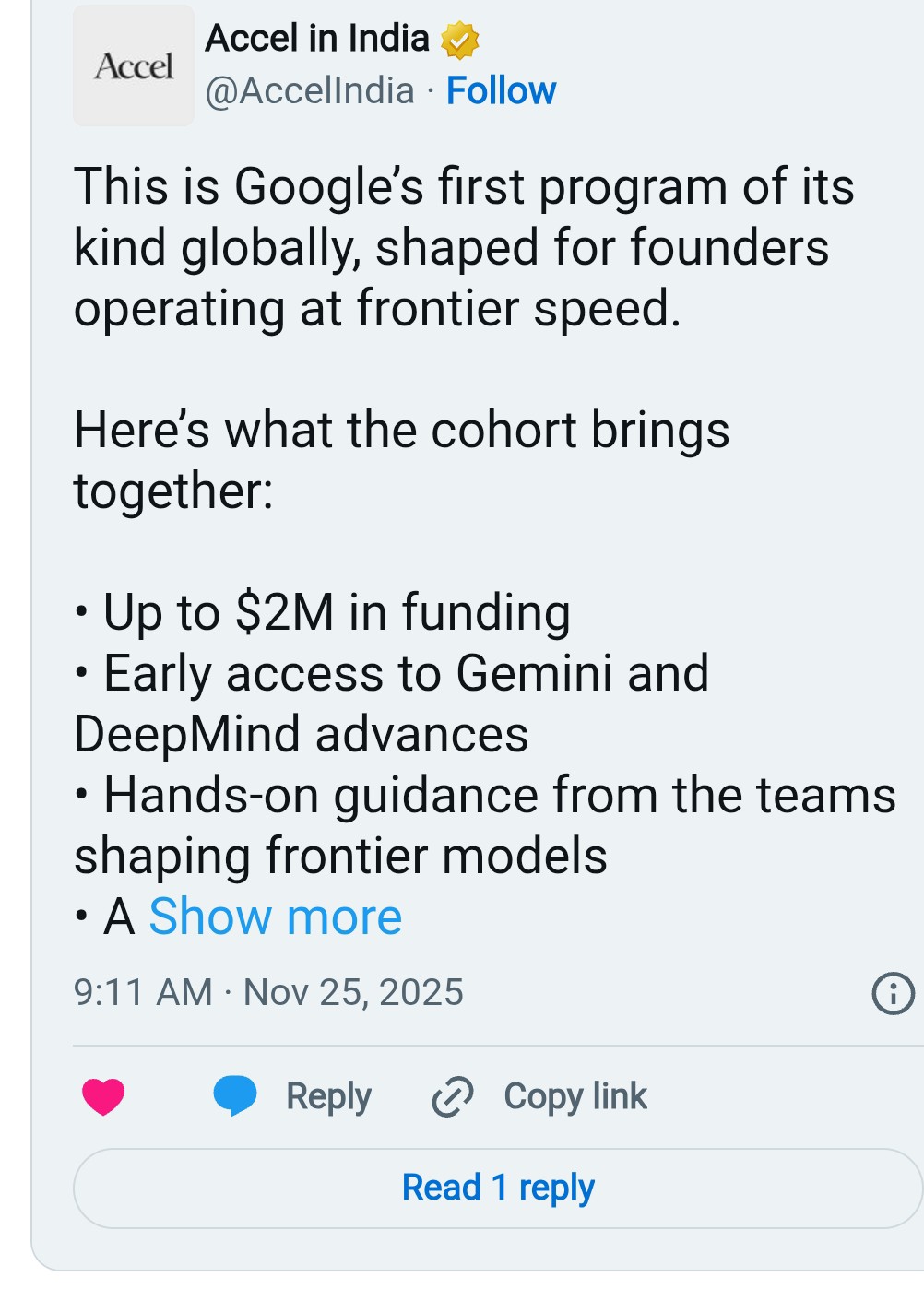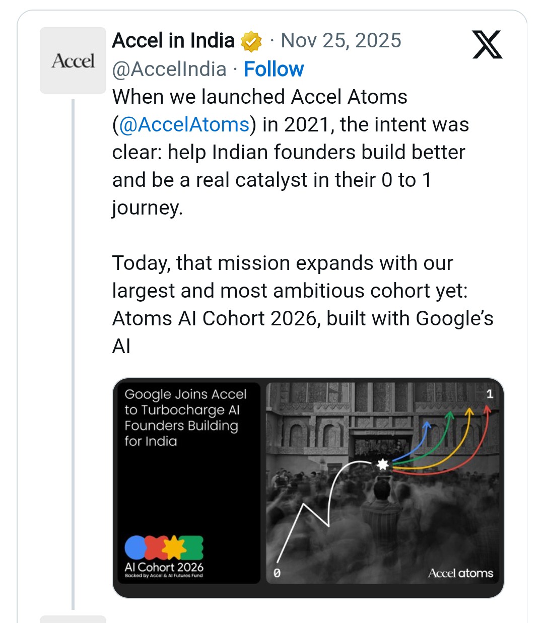 Reading: Google, Accel partner to invest millions in at least 10 Indian AI startups