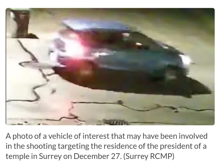 The incident involved nearly a dozen shots fired at the residence of Satish Kumar’s son, president of the Lakshmi Narayan Mandir in Surrey. The RCMP seeks public assistance, urging anyone with information about the vehicle to come forward.