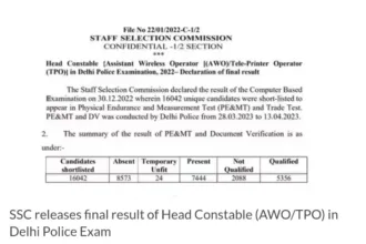 SSC Head Constable AWO/ TPO final result declared at ssc.nic.in, here’s direct link