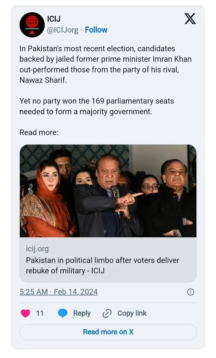 Separately, a report by the International Consortium of Investigative Journalists (ICIJ), highlighted that the contentious nature of these polls, marked by allegations of rigging and political uncertainty, were unlikely to bring stability to the nation of over 240 million.