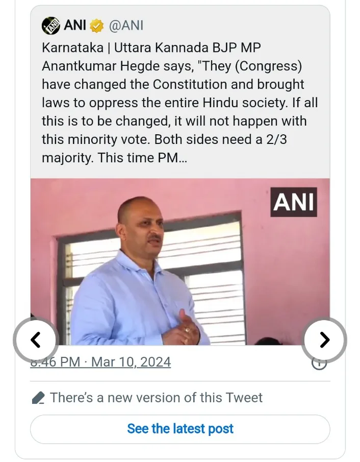 Hegde claimed that to amend the constitution, both houses of Parliament, Lok Sabha, and Rajya Sabha, would require a two-thirds majority, specifically addressing unnecessary elements added by Congress. He asserted that BJP would need to come to power in over 20 states to pursue constitutional amendments. Hegde, a six-time Lok Sabha member from North Karnataka, expressed concerns about the alleged distortion of the constitution by introducing laws intended to suppress the Hindu community.