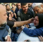“Hang in there!” rescuers were heard calling to the woman, in police footage from the rainy scene published by local media.