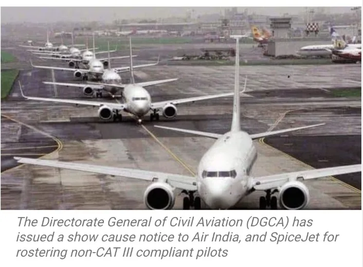 In response to the diversion of over 50 flights bound for Delhi due to low visibility, the Directorate General of Civil Aviation (DGCA) has issued a show cause notice to both Air India and SpiceJet for rostering non-CAT III compliant pilots. The notice requires a response within 14 days, highlighting concerns over the airlines’ adherence to aviation safety standards.