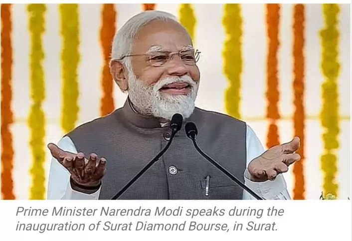 4. Surat’s Transformation:Modi praised Surat’s transformation from ‘Sun City’ to ‘Diamond City,’ attributing it to the hard work of the people. He lauded Surat Diamond Bourse as a symbol of “Modi’s guarantee.”
