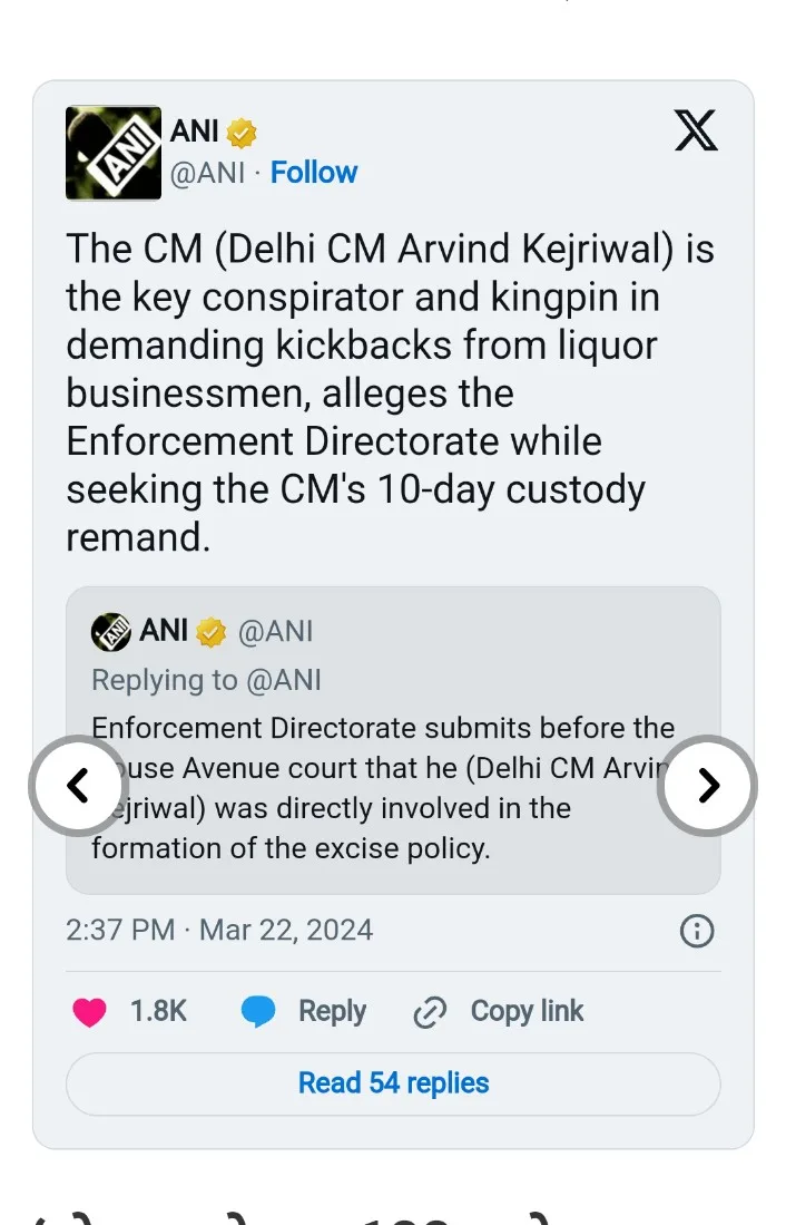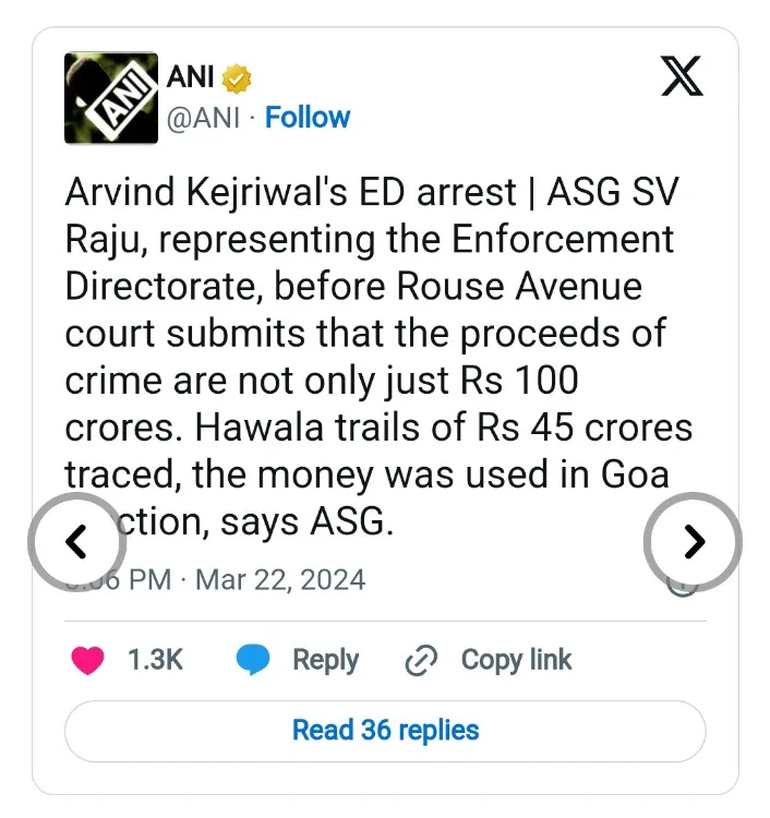During the court proceedings, ASG SV Raju representing the Enforcement Directorate stated that the scam involves much more than the reported 100 crores. He revealed that an illegal transaction of 45 crores was traced, which was allegedly used during the Goa elections. Raju also mentioned allegations of bribery against Kejriwal.