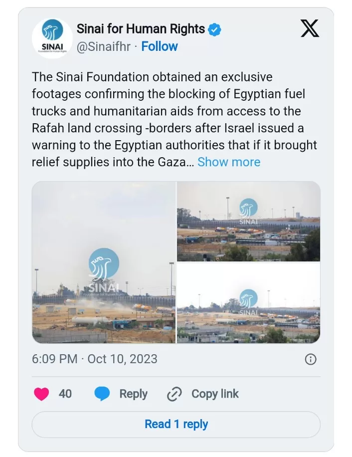 On Monday, a limited number of people left Gaza through the Rafah crossing, and approximately 500 people entered, though the movement of goods was halted. The security situation around Rafah is of paramount concern to Egypt due to the history of an Islamist insurgency in northern Sinai.