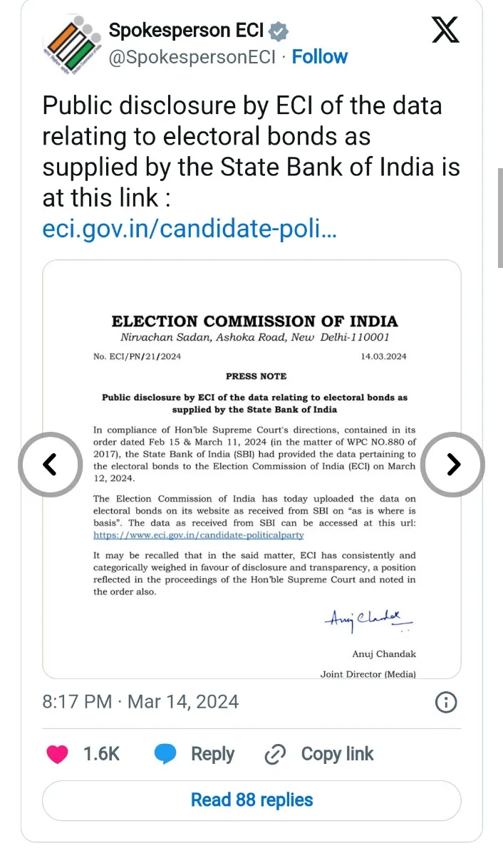 The disclosure sheds light on the substantial financial backing received by various entities through Electoral Bonds, raising questions about transparency and accountability in political funding. Citizens can now access the complete data on the Election Commission’s official website, marking a crucial step towards greater transparency in electoral financing.