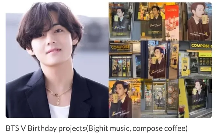 Taehyung, the official brand ambassador for Compose Coffee, sees preparations underway to embellish all 2,414 outlets across the country. The ‘V drink’ launch, specially designed cup holders, and TV commercials add to the excitement.
