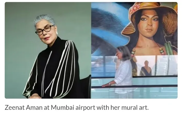 Veteran actor Zeenat Aman, on her way to a New Year holiday, shared a moment of reflection at Mumbai airport as she encountered a mural featuring herself and other Indian cinema icons. The video posted on her Instagram captures the actress on a travelator with the mural in the background.