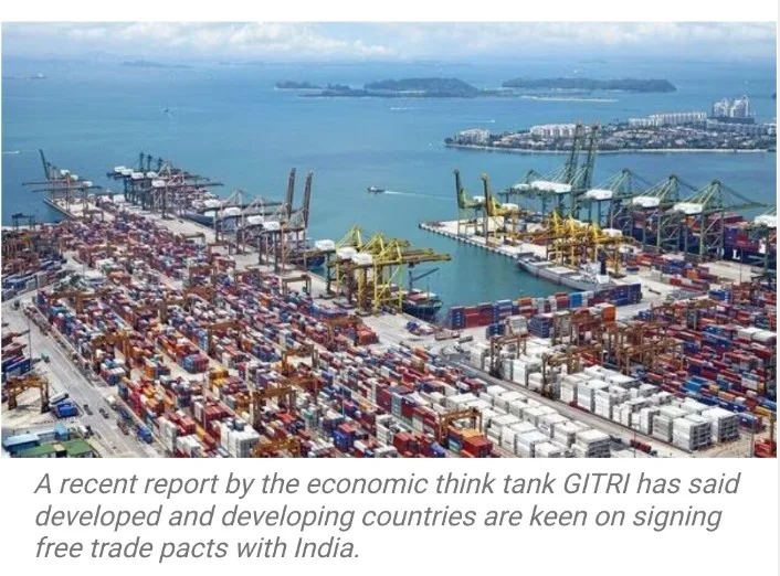 New Delhi, A recent report by the Global Trade Research Initiative (GTRI) indicates that both developed and developing nations are eager to engage in free trade agreements (FTAs) with India. The allure stems from India’s burgeoning market and robust economy, offering countries an opportunity to access the Indian market with reduced or zero import duties.