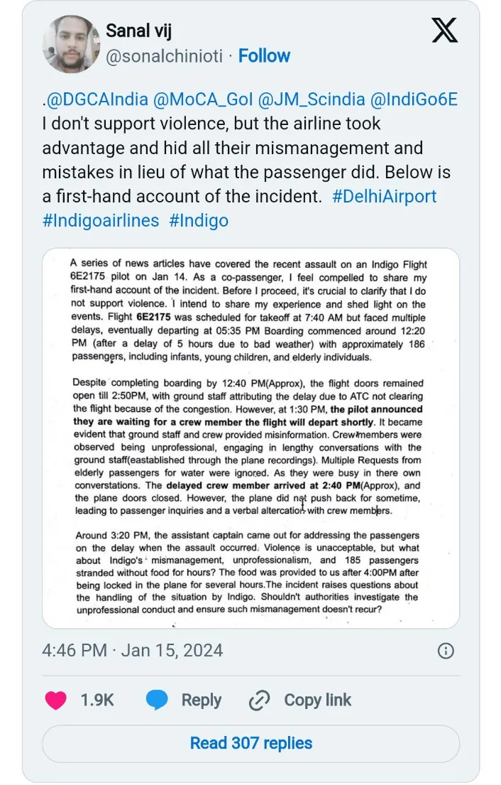 On Monday, fellow passenger Sonal Vij explained how the situation unfolded on social media site X — formerly Twitter.