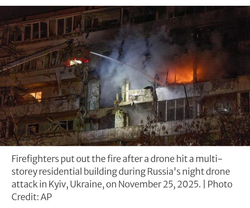 Underlining the stakes for Ukraine, its capital Kyiv was hit by a barrage of missiles and hundreds of drones overnight in an attack that killed at least six people. Residents were sheltering underground wearing winter jackets, some in tents.