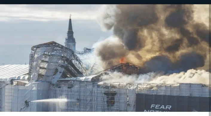 COPENHAGEN: A fire ripped through Copenhagen’s Old Stock Exchange, one of the Danish capital’s most famous landmarks, on Tuesday, engulfing its spire which collapsed in a scene reminiscent of the 2019 blaze at Paris’ Notre-Dame Cathedral.