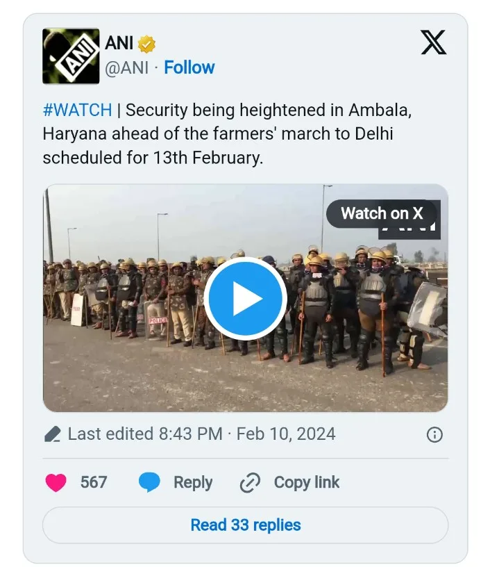 In response to farmers announcing a march to Delhi on February 13, Haryana administration has issued alerts and taken significant steps to manage the situation. In a bold move, internet services have been suspended in seven districts of Haryana, including Ambala, Kurukshetra, Kaithal, Jind, Hisar, Fatehabad, and Sirsa, from 6 AM on February 11 to 11:59 PM on February 13. Additionally, stringent security measures have been implemented along the borders.
