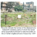 GAZA STRIP: Even the dead are not spared by the Israeli invaders in Gaza, with bodies dug up by troops and hurried burials happening in hospitals and even a school.