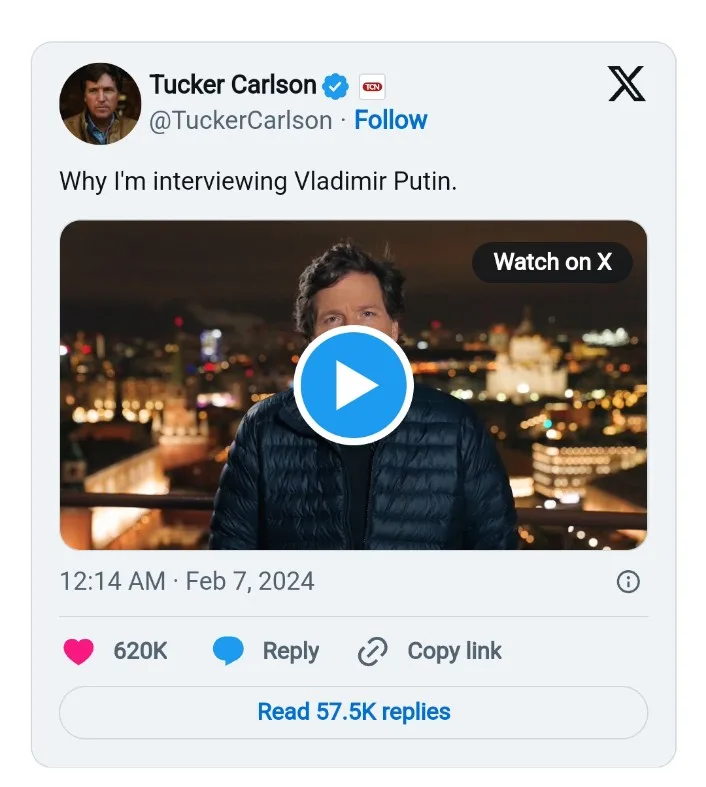 Carlson, a conservative firebrand and Trump supporter, has used his media platform to question U.S. support for Ukraine and defend the Kremlin. Russian state television regularly airs clips from his posts.
