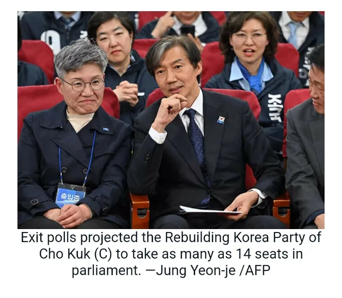 That includes the new Rebuilding Korea party, led by former justice minister Cho Kuk, which capitalised on discontent with the two main parties to pick up a projected 12-14 seats.