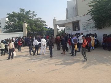 There are no public toilets in the outer premises, no drinking water points, no shaded waiting areas or benches, and no designated parking zone. The approach road – a narrow rural thoroughfare – becomes nearly impassable during the monsoon. During examinations, thousands of candidates and their guardians are forced to wait under the open sky, in scorching heat, rain, or winter chill.