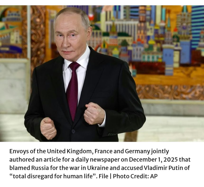 Written by Lindy Cameron, the UK high commissioner, Thierry Mathou, the French ambassador, and Philipp Ackermann, Germany’s ambassador, the piece accused Moscow of waging a “war of aggression with absolute ruthlessness” and claimed that Russia’s leadership displayed an “appetite for territorial expansion and global destabilisation” that extends well beyond Ukraine.