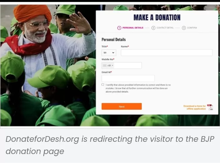 The domain in question, DonateforDesh.org, now redirects visitors to the BJP’s donation page. Adding to this twist, OpIndia, another website, acquired two related domains associated with the campaign, redirecting them to their own donation pages.