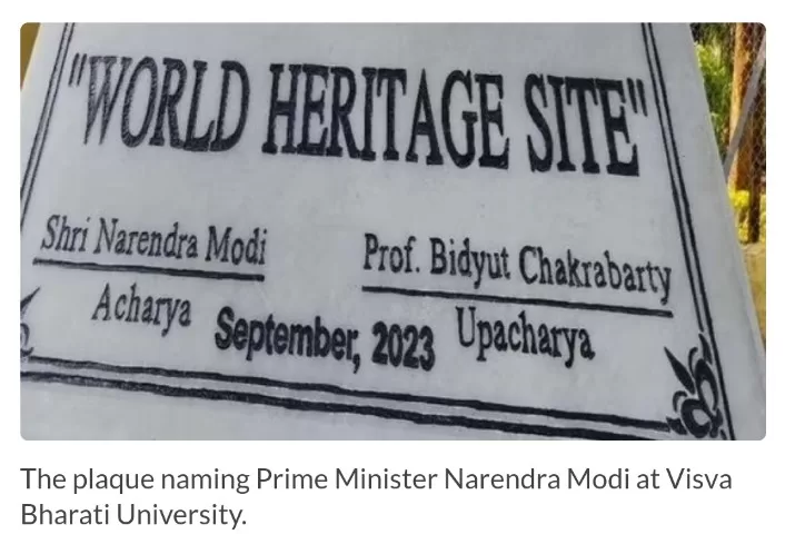 Visva-Bharati University, located in Shantiniketan town in Bengal’s Birbhum district, recently gained UNESCO world heritage status. The university had initially installed three plaques bearing the names of Prime Minister Narendra Modi and the vice-chancellor Bidyut Chakrabarty. These plaques were considered temporary and will be replaced with new ones bearing inscriptions provided by the Archaeological Survey of India and UNESCO by the end of October.