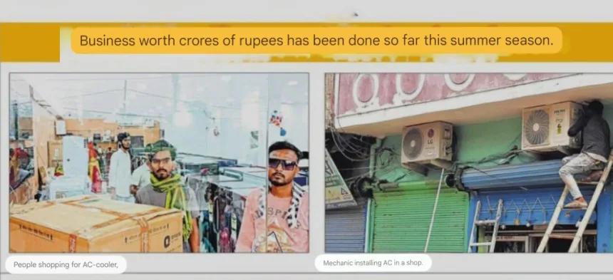 Nawada, Bihar ,This season, the scorching heat in the district has taken a severe toll, with maximum temperatures soaring past 47 degrees Celsius. Even though Thursday saw a slight dip to 43.9 degrees, with a minimum of 37.9 degrees, residents remain distressed. This intense heatwave has significantly impacted the business of electronic products, particularly air conditioners (ACs) and coolers.