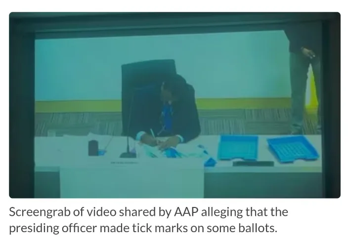 The video, shared by AAP, allegedly shows the presiding officer, Anil Masih, making marks on some ballots during the counting process. The AAP and Congress, contesting as part of the INDIA bloc, have accused Masih of manipulating the ballots, raising concerns about the fairness of the election process.