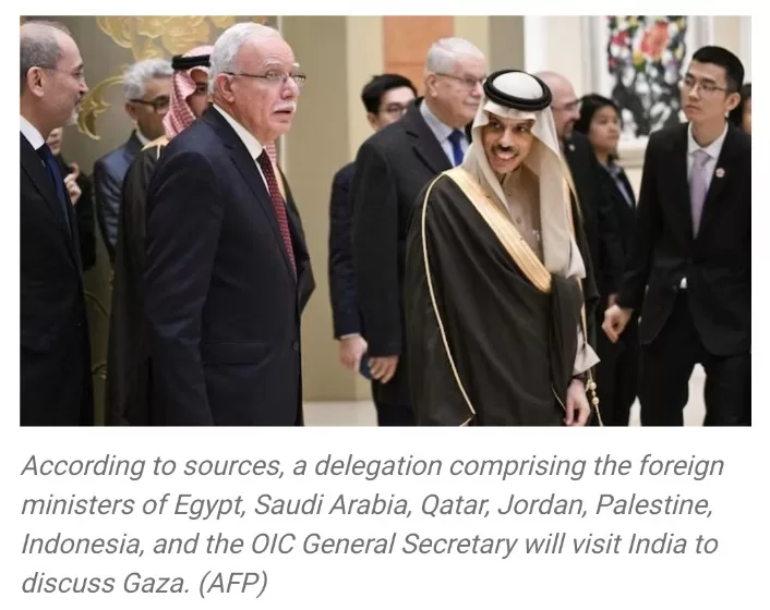 In a significant diplomatic move, a seven-member delegation representing Arab and Islamic nations, carefully selected in Riyadh, is scheduled to visit key nations, including India, as part of a comprehensive initiative to address the escalating crisis in Gaza. The delegation comprises the foreign ministers of Egypt, Saudi Arabia, Qatar, Jordan, Palestine, Indonesia, and the General Secretary of the Organisation of Islamic Cooperation (OIC).