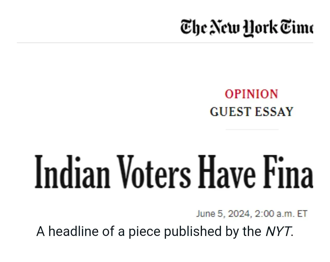 “Indian voters have finally woken up,” an opinion piece on the NYT highlighted.