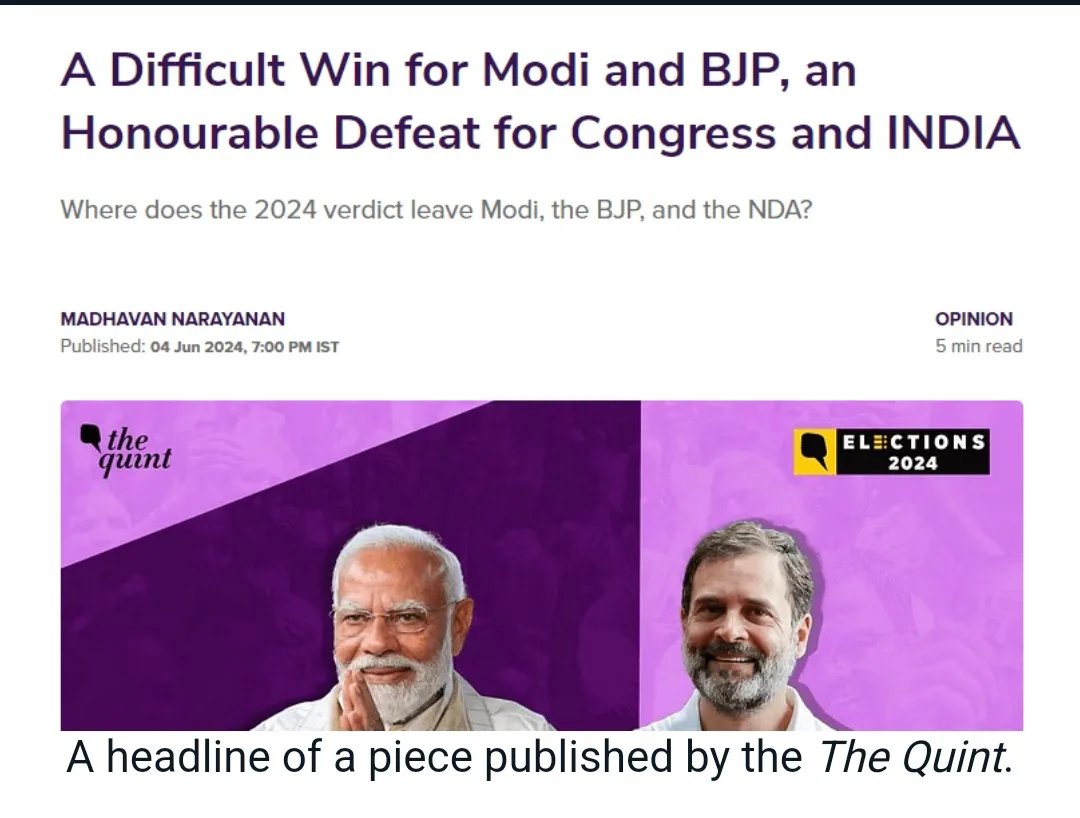 An opinion piece in The Quint termed it a “difficult win for Modi and BJP [and] an Honourable Defeat for Congress and INDIA”.