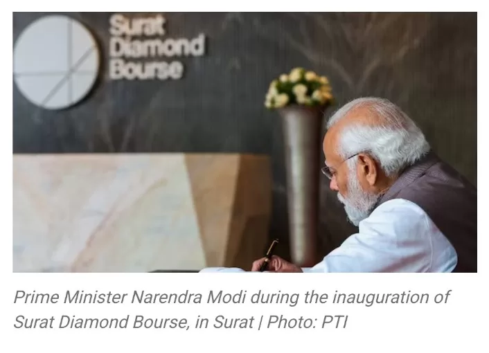 Prime Minister Narendra Modi officially opened the Surat Diamond Bourse in Gujarat’s Surat district. Describing it as a symbol of “new India and country’s determination,” PM Modi highlighted its potential to create employment opportunities. The new diamond bourse is set to employ an additional 1.5 lakh people, contributing significantly to the diamond industry.
