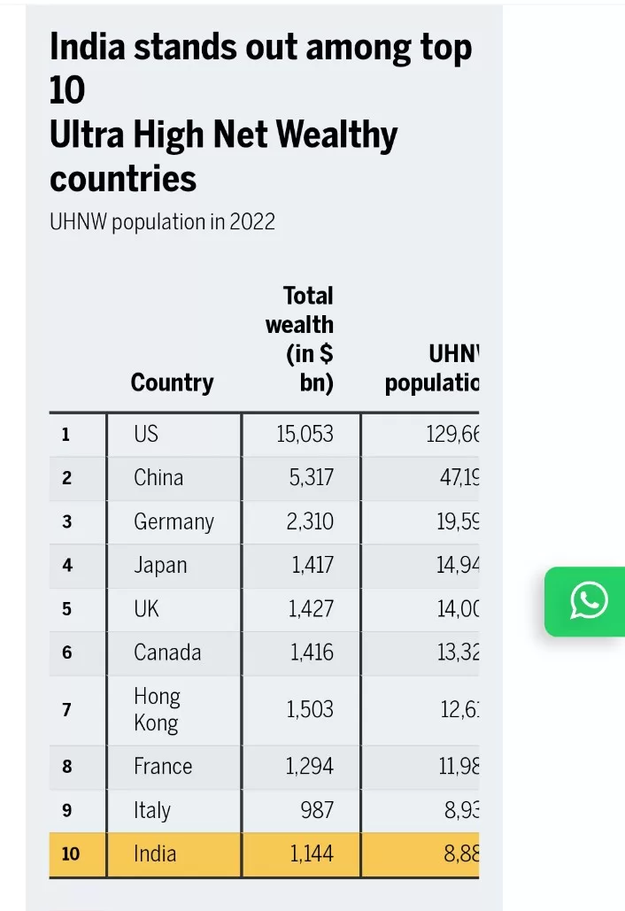 New Delhi- In a remarkable departure from global trends, India has emerged as the sole nation among the world’s top 10 ultra-high-net-worth (UHNW) countries to witness an increase in its ultra-wealthy population in the year 2022. This revelation comes from the World Ultra Wealth Report 2023, published by Altrata.