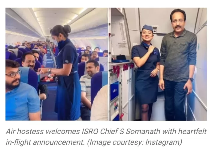 However, the tapestry of triumph finds its embellishments not merely in the stratospheric feat, but in the emotive symphony of human solidarity that unfolded thereafter. ISRO’s luminary S Somanath, the harbinger of India’s cosmic aspirations, embarked upon an IndiGo flight. Herein, he was enveloped by an exquisite gesture of hospitality, as the flight crew extended an embrace of honor that transcended the boundaries of the ordinary.