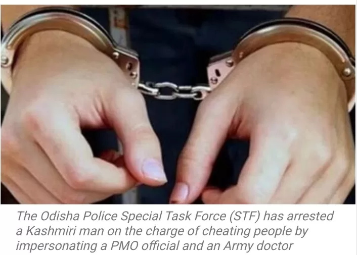 The Odisha Police Special Task Force (STF) apprehends a Kashmiri man, Sayed Ishaan Bukhari, for impersonating a PMO official and an Army doctor, engaging in fraudulent activities, and marrying multiple women across various states. The 37-year-old, with reported links to individuals in Pakistan and suspicious elements in Kerala, was captured in Neulpur village, Jajpur district, based on a tip-off.