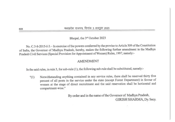 In a groundbreaking move, the Madhya Pradesh government unveiled a progressive policy on Tuesday, reserving a remarkable 35% of government positions for women during the initial recruitment stage. This significant announcement follows the leadership of Chief Minister Shivraj Singh Chouhan and was formally communicated through a notification by the General Administration Department.