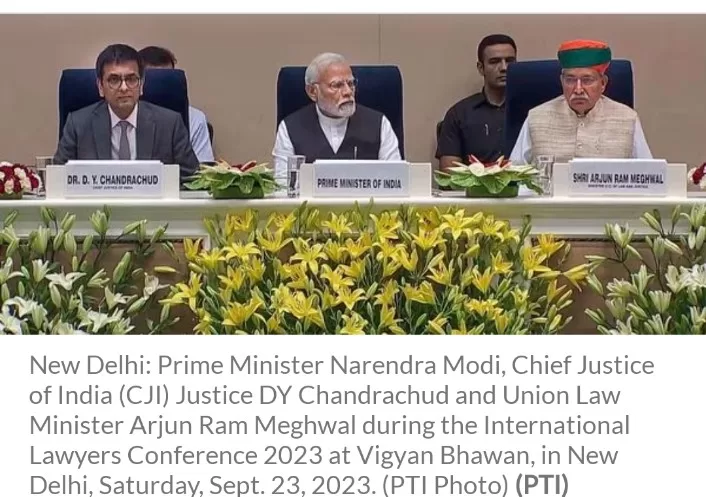 In a distinguished gathering at Vigyan Bhawan, New Delhi, Prime Minister Narendra Modi inaugurated the 2023 International Lawyers’ Conference, joined by Chief Justice of India (CJI) Justice DY Chandrachud and Union Law Minister Arjun Ram Meghwal.