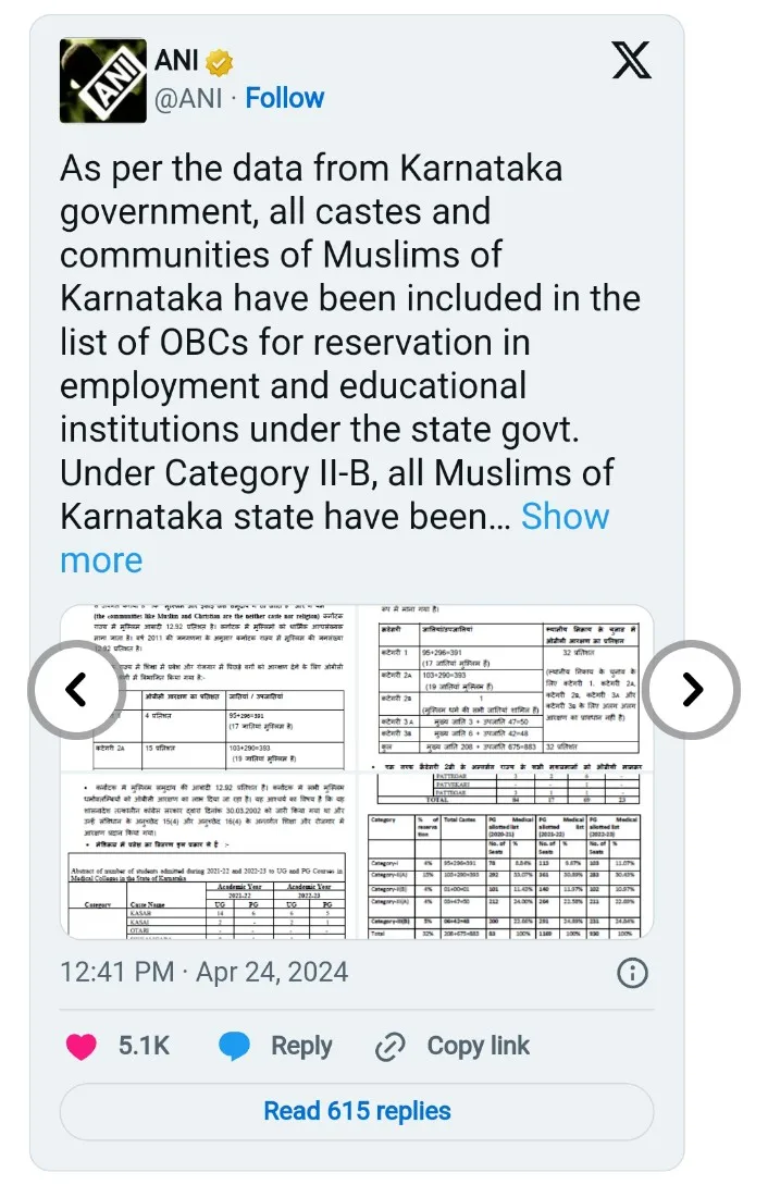 Reading: Reservation for Muslims in Karnataka under OBC category
