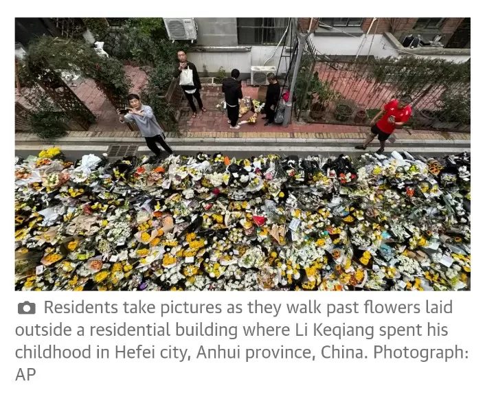 Nonetheless, despite the orchestrated censorship efforts aimed at curbing “excessive” expressions of bereavement and congregations, residents of Li’s hometown, Hefei, located in Anhui province, defied these restrictions. Over the weekend, hundreds of mourners, recognizing Li as one of their most esteemed sons, placed flowers in a heartfelt display of respect.