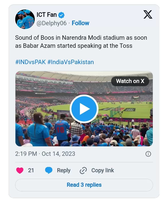 The Men in Green faced a chorus of boos as they took the field, particularly when their captain, Babar Azam, was speaking at the toss.