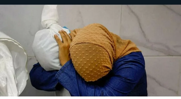 The picture was taken on October 17 at Nasser Hospital in Khan Younis in southern Gaza, where families were searching for relatives killed during the Israeli bombing of the Palestinian enclave. Salem’s winning image portrays Inas Abu Maamar, 36, sobbing while holding Saly’s sheet-clad body in the hospital morgue.