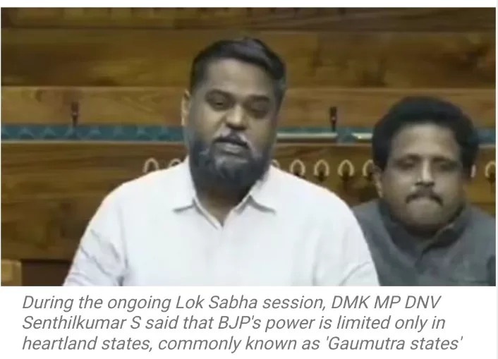 New Delhi, A storm of controversy erupted in the Lok Sabha as DMK MP DNV Senthilkumar S referred to Hindi-speaking states as ‘Gaumutra states’ following BJP’s landslide victory in Rajasthan, Madhya Pradesh, and Chhattisgarh. The remarks drew criticism from various political quarters.