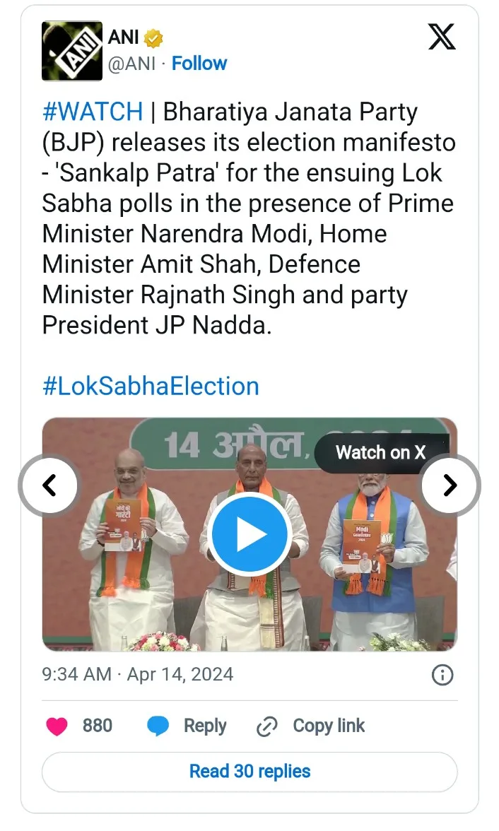 It’s noteworthy that the BJP had recently formed an election manifesto committee for the Lok Sabha elections, with Defence Minister Rajnath Singh as its chairman. Finance Minister Nirmala Sitharaman was appointed as the convenor, and Union Minister Piyush Goyal as the co-convenor.