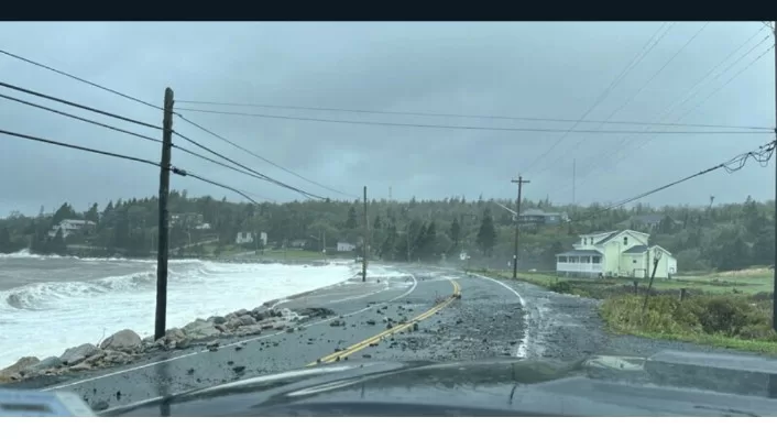 Along Nova Scotia’s coastline, ferocious waves mercilessly inundated coastal thoroughfares with debris in various locales.
