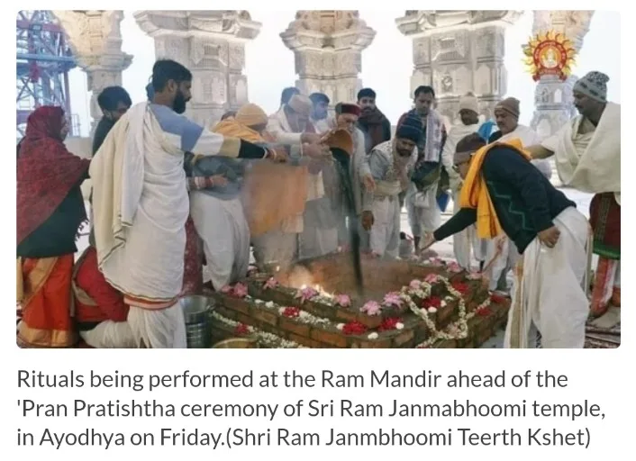 On Sunday, daily puja of the deities with Havan will be done. After that the bathing of the statue with various medicated water from 114 Kalash (vases) will take place. There will be ‘Vyahati Hom’, night vigil, with regular evening puja and aarti,” Shri Ram Janmbhoomi Teerth posted on X.