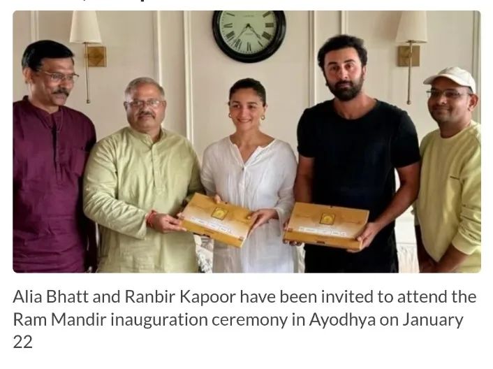 In a notable development, actors Ranbir Kapoor and Alia Bhatt have received a personal invitation from the Rashtriya Swayamsevak Sangh (RSS) to attend the inauguration ceremony of the Ram Temple in Ayodhya on January 22. This invitation comes on the heels of the recent invitation extended to actor Rajinikanth for the same event.