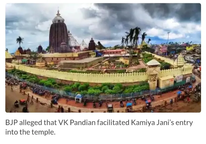 The BJP alleges that VK Pandian facilitated Kamiya Jani’s entry into the temple and raised objections to the use of a video camera on the temple premises, which is reportedly banned by the Shree Jagannath Temple Administration (SJTA).