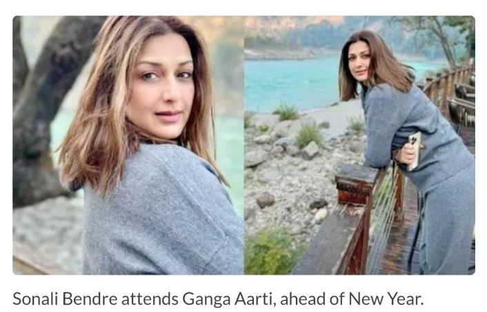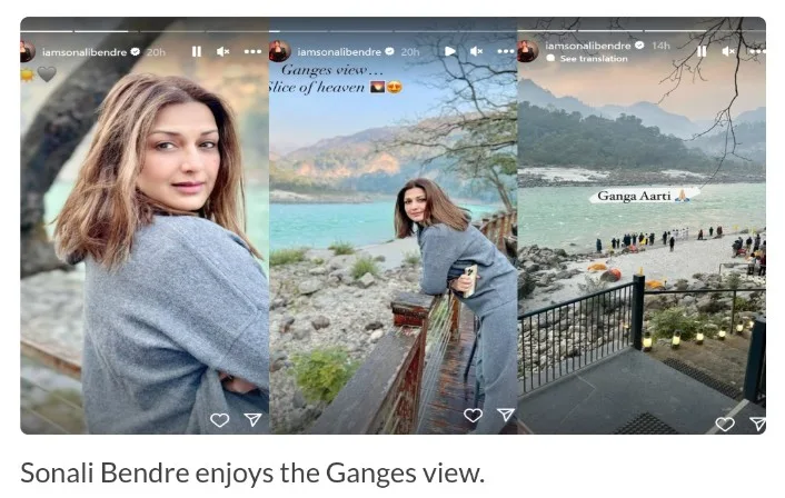 In a recent Instagram post, Bendre, donned in a grey tracksuit with a minimal makeup look, treated her fans to picturesque views of the Ganges. The background adorned with rivers and mountains added to the beauty of the scenic landscape.
