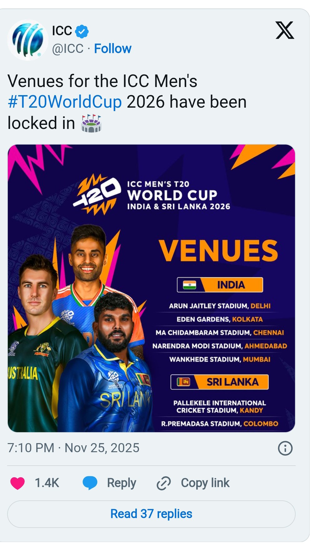 The T20 World Cup is set to go from February 7 to March 8 across eight venues; five in India and three in Sri Lanka.